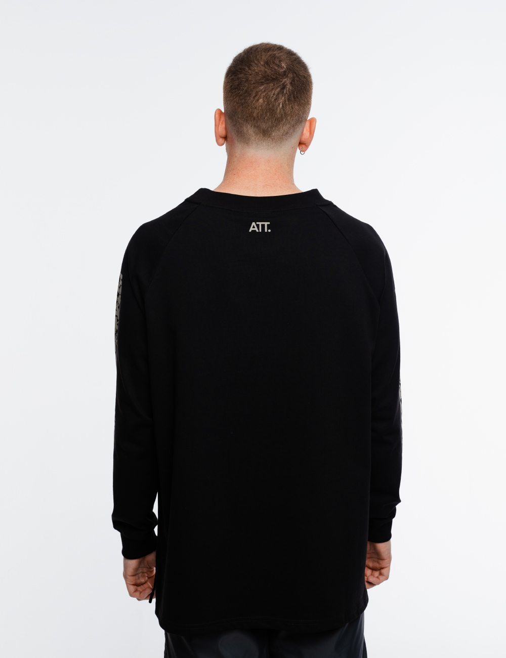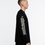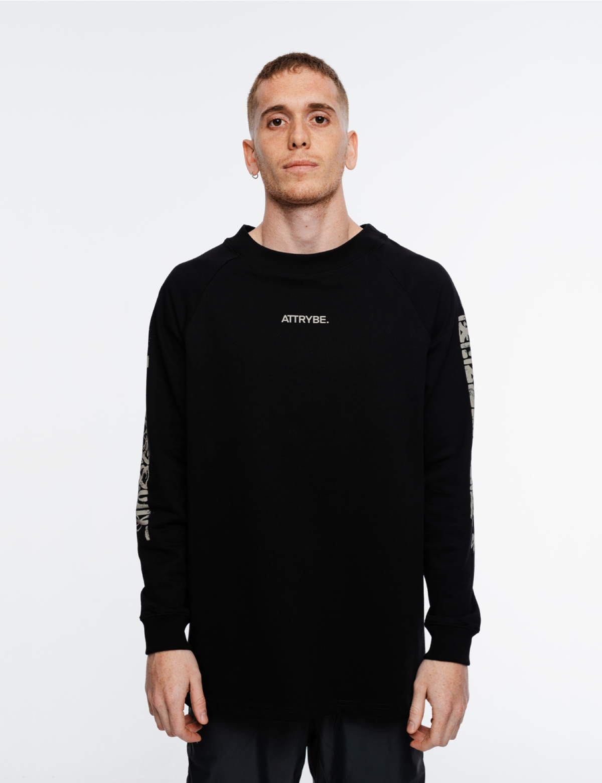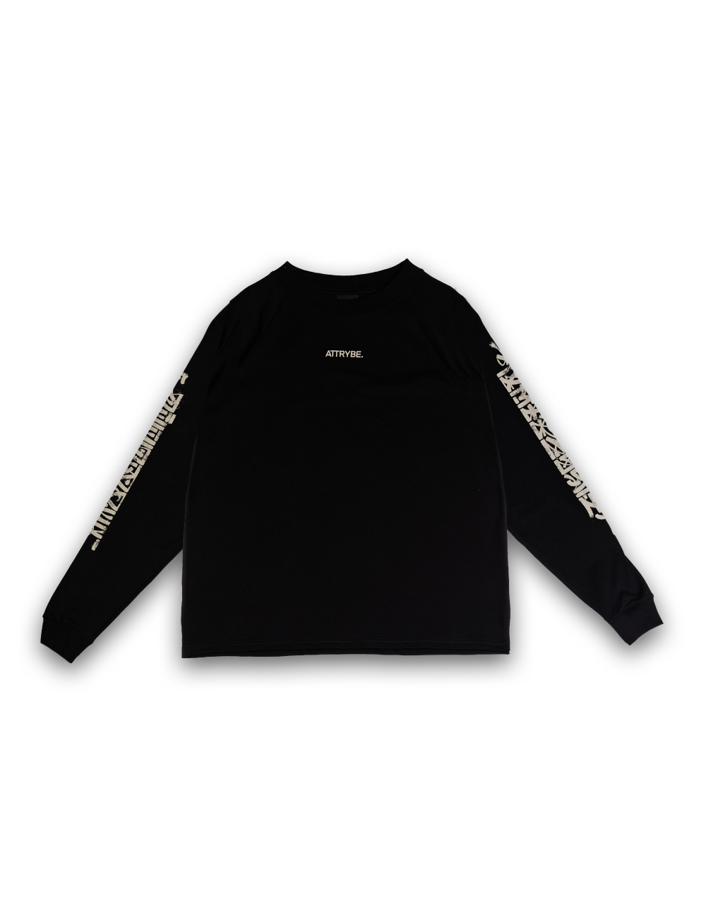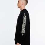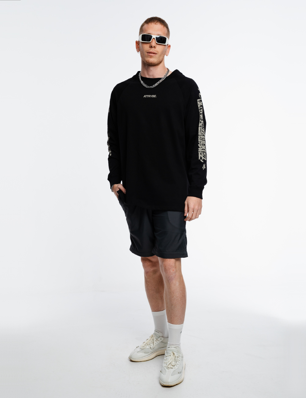 Oversized long sleeve tee in black made from heavyweight 100% cotton jersey printed front, back and sleeves.