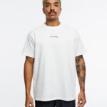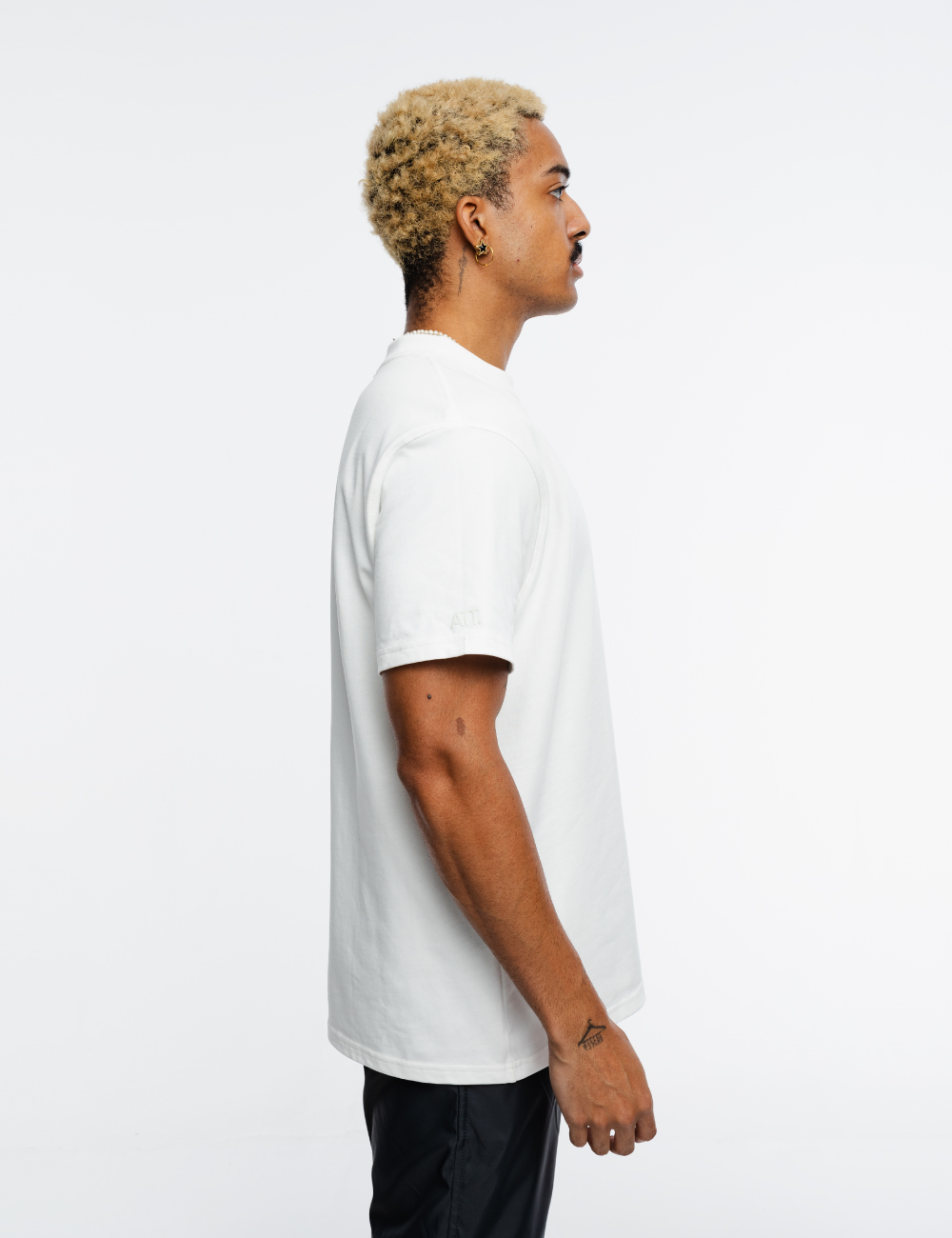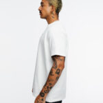 Camiseta de manga corta ligeramente oversize en color marfil, confeccionada en jersey pesado 100% algodón, estampado en el frente y la espalda.