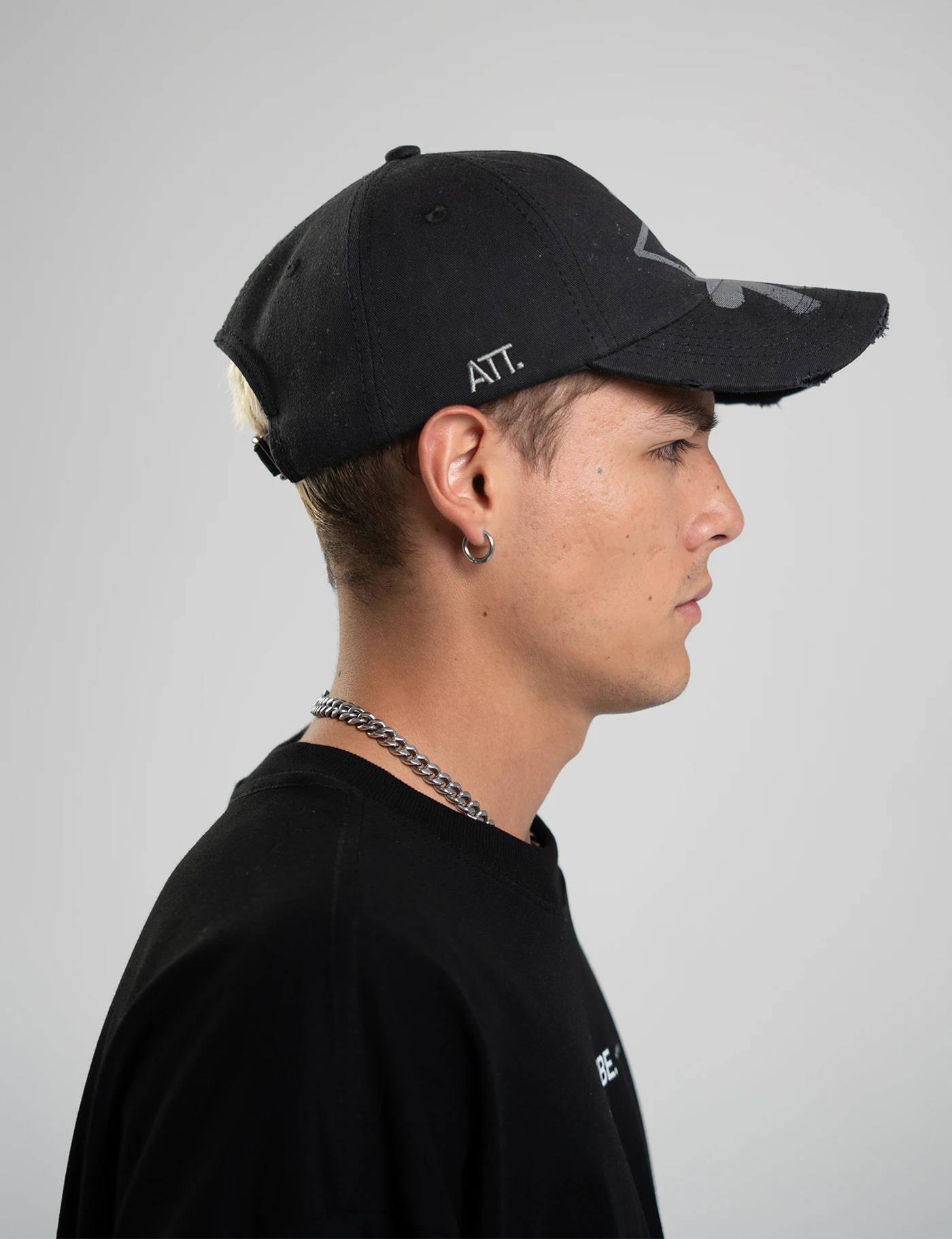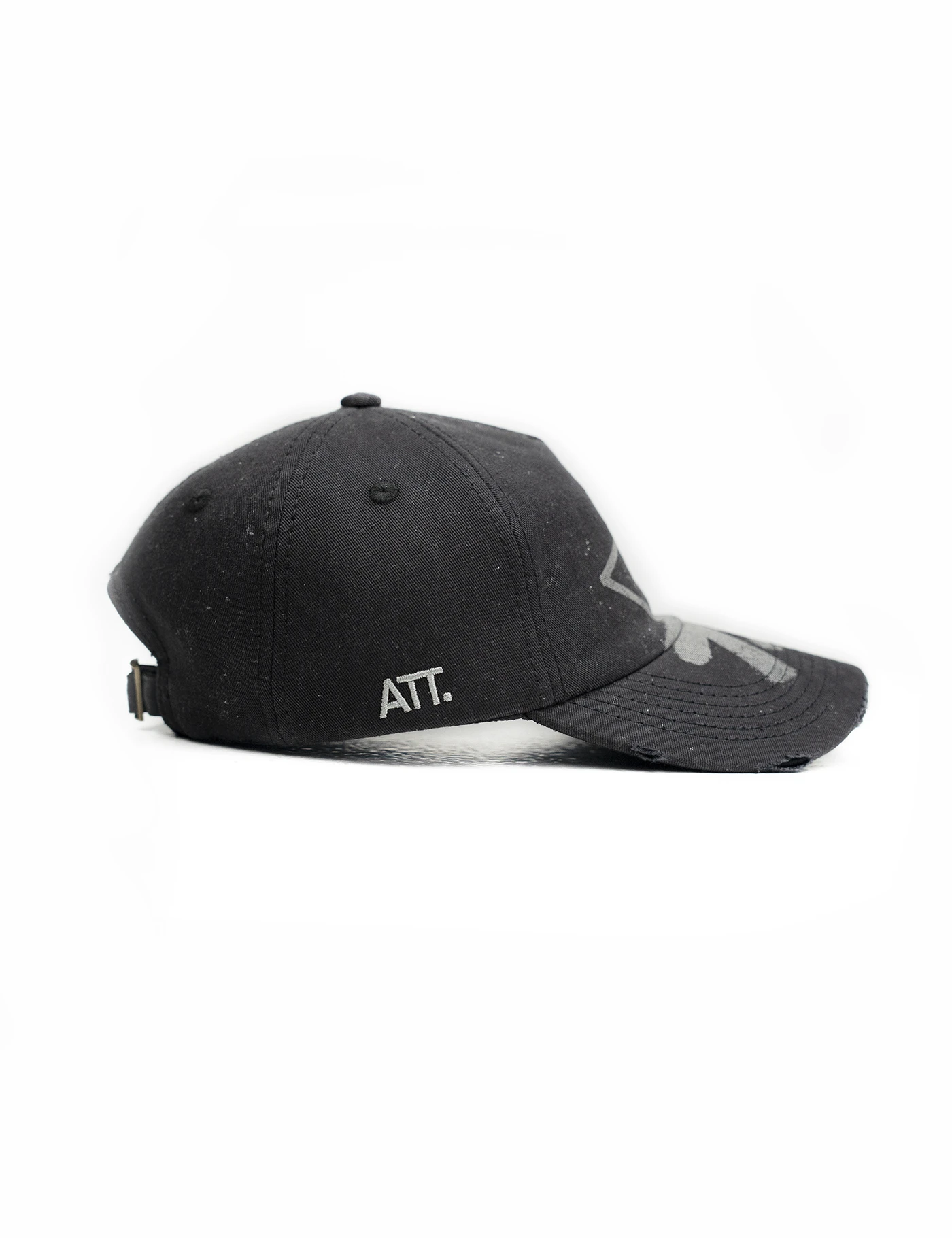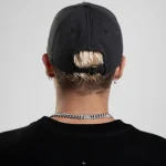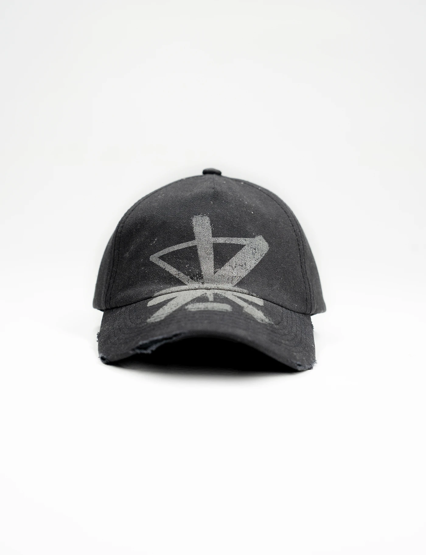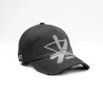 Gorra gris oscura 100% algodón. Estampada en la parte frontal y con variaciones tonales propias del proceso.