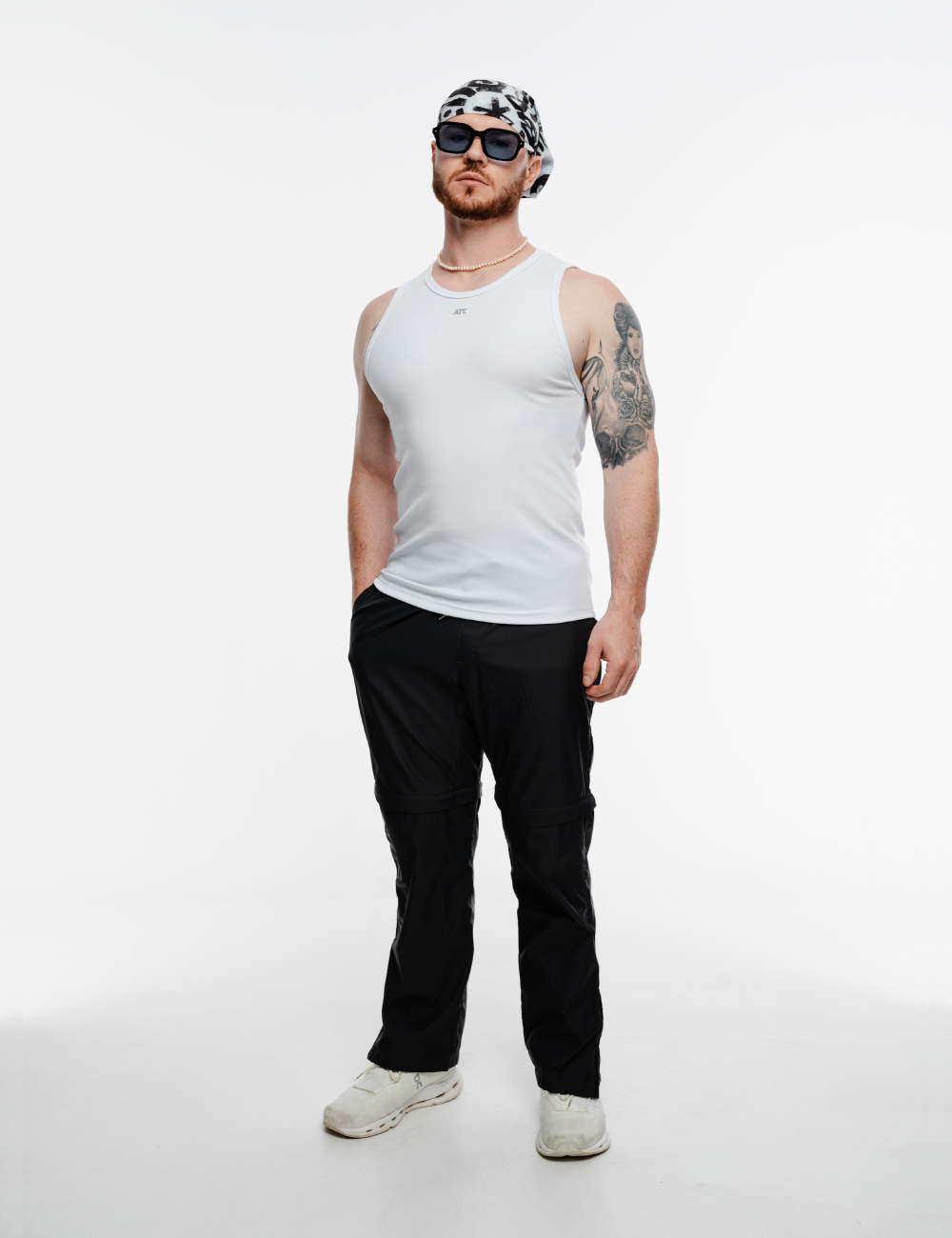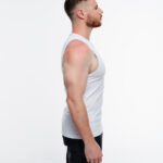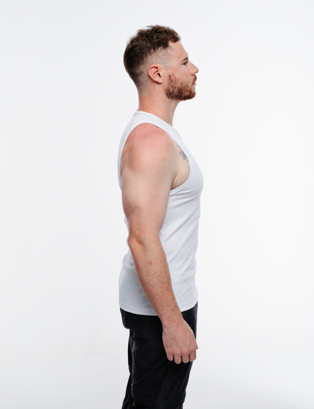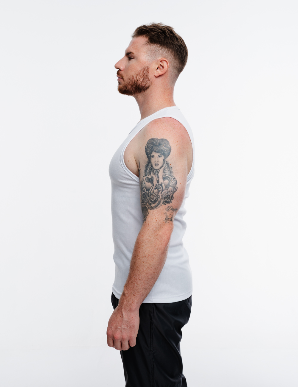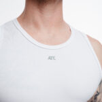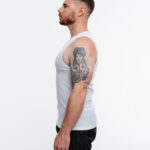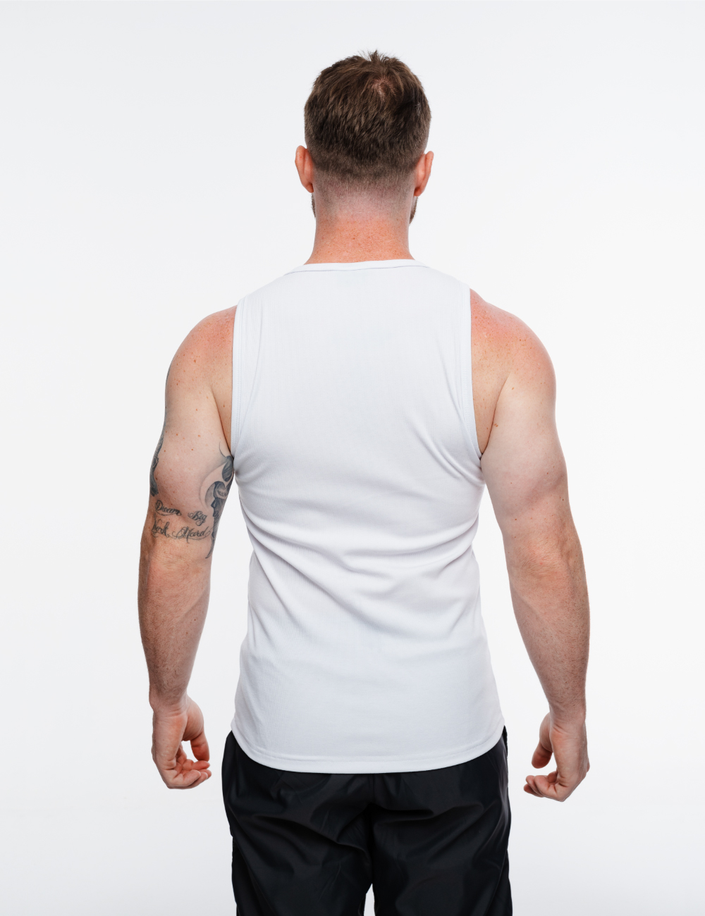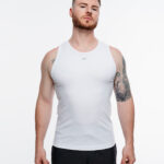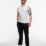 Tank top slim fit en color negro, hecha de tela acanalada ligera y suave, con estampado en la parte frontal.