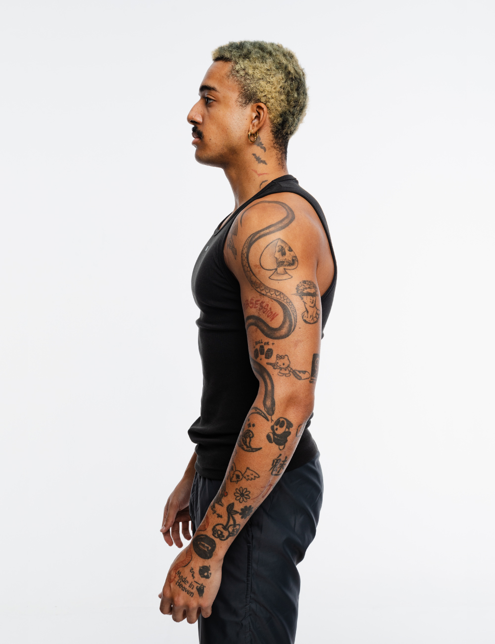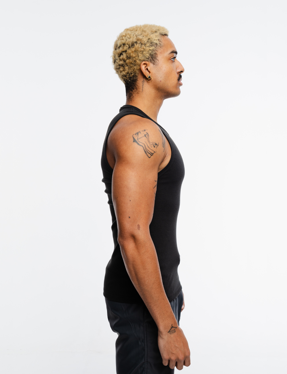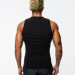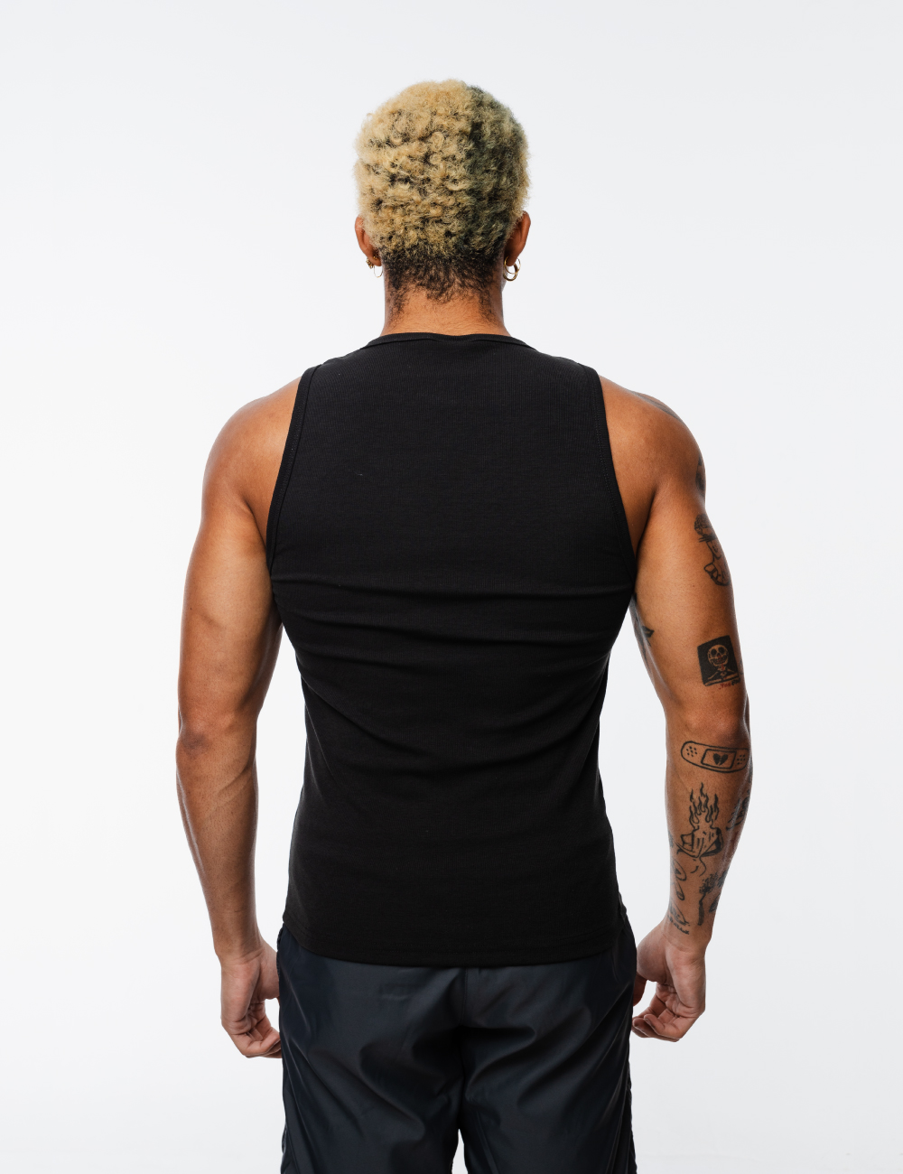 Tank top slim fit en negro, hecha de tela acanalada ligera y suave, con estampado en la parte frontal.